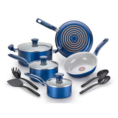 Vibrant non stick cookware set with t fal s unique thermospot technology.