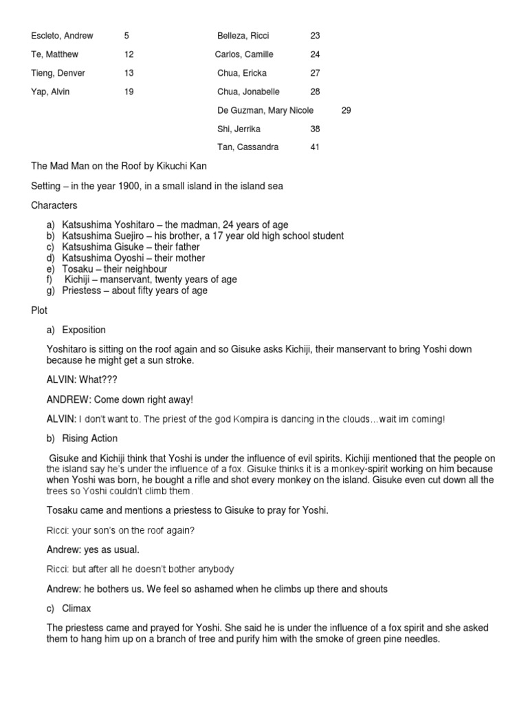 Bsee 4 the mad man on the roof summary there was 24 years old man named katsushima yoshitaro who loves to climb on trees and roofs.